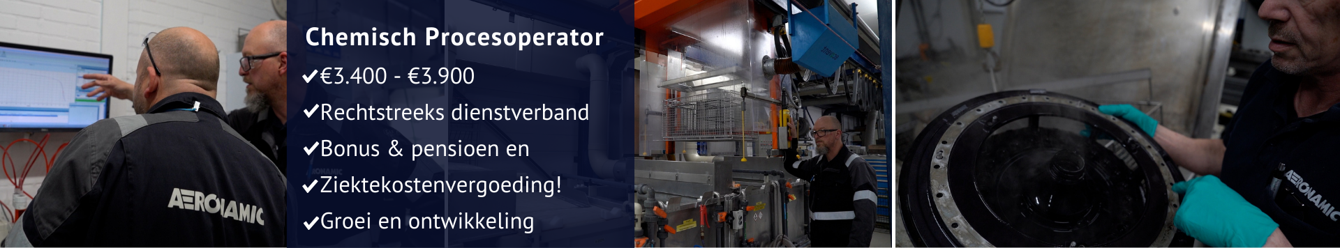 Als Chemisch Procesoperator werk je in een hecht team van 4 operators aan het chemisch behandelen van hoogwaardige luchtvaartonderdelen. Je analyseert en onderhoudt baden, voegt chemicaliën toe en voert processen uit zoals reinigen, conversiecoaten en anodiseren (Tagnite). Je werkt volgens strikte kwaliteitsnormen en planning, waarbij veiligheid en nauwkeurigheid centraal staan. Je houdt procesdocumentatie bij en neemt deel aan audits zoals Nadcap en AS9100. Je wordt breed opgeleid en begeleid door chemical process engineers, zodat je uitgroeit tot allround specialist.