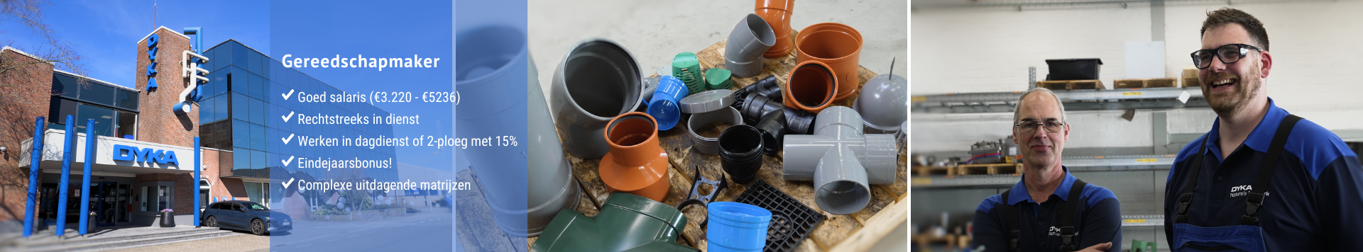 DYKA produceert sinds 1957 kunststof leidingsystemen en doet alles in eigen huis in Steenwijk. Het bedrijf is onderdeel van Tessenderlo Group, maar behoudt een nuchtere, praktische werksfeer met korte lijnen en veel samenwerking.