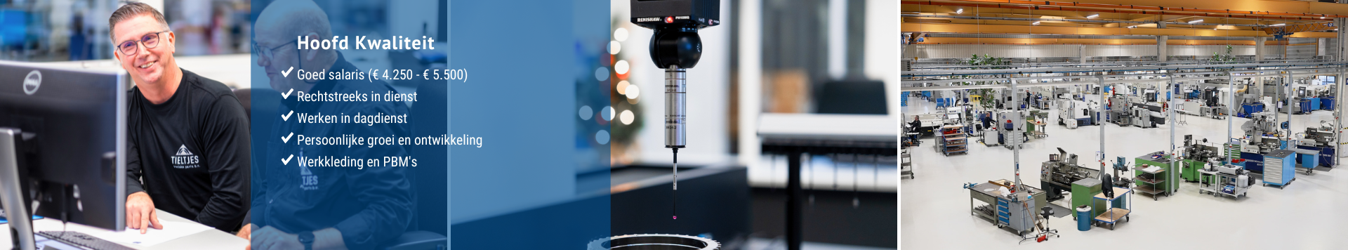 Daarnaast bespreek je de meetbevindingen met de productie, denkt in een vroeg stadium mee over de maakbaarheid van nieuwe producten en hebt contact met klanten over maatvoering en kwaliteitseisen en neem je de leiding in kwalificatieorders met en voor klanten. Bij afkeur lever je input voor 8D-trajecten en ondersteun je waar nodig bij kwaliteitsvraagstukken. Samen met de kwaliteitscoördinator verdeel je de werkzaamheden in de meetkamer en kijk je vooruit. Hoe houden we de meetkamer toekomstbestendig? Welke nieuwe technieken, trends of investeringen zijn nodig om ook de komende jaren tot de top van de industrie te blijven behoren? Jij denkt mee, neemt initiatief en helpt Tieltjes verder groeien.