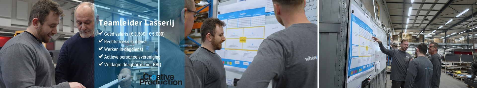 Ben jij een ervaren metaalbewerker die overzicht houdt én collega’s weet mee te nemen? Wil je werken in een rol tussen werkvloer en kantoor, waarin je leidinggeeft maar ook betrokken blijft bij het vak? Dan is deze functie als Teamleider Lasserij bij Creative Production in Gemert iets voor jou.